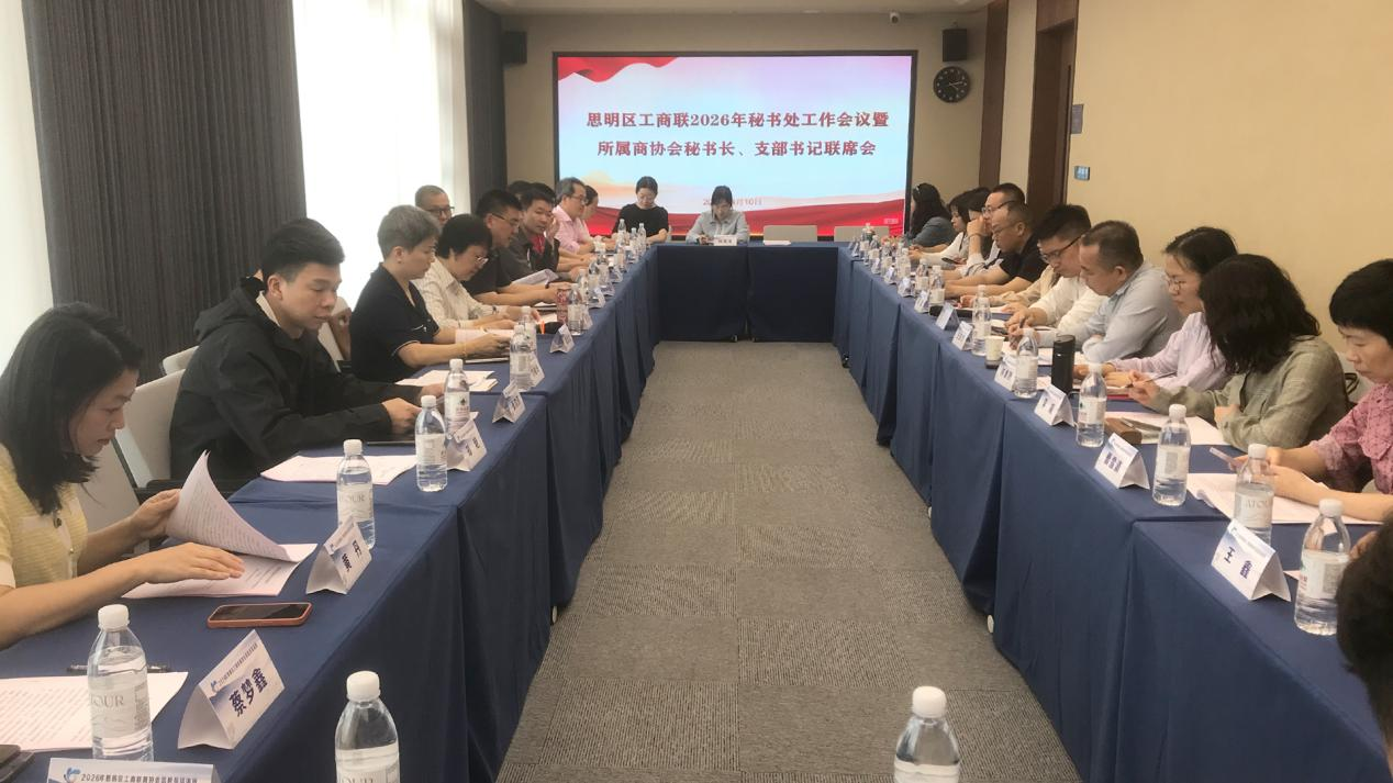 新福建新闻客户端4月16日讯 近日,厦门市思明区工商联组织召开2026年秘书处工作会议暨所属商协会秘书长、支部书记联席会议,旨在凝聚工作合力,推动商协会规范化建设和提质增效,更好促进“两个健康”(非公有制经济健康发展和非公有制经济人士健康成长)。