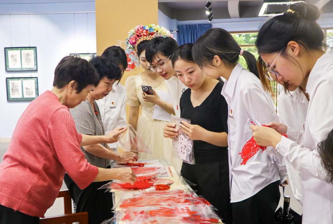 活动现场还特别邀请了安溪竹藤编、泉州花灯、泉州木偶头雕刻、泉州(李尧宝)刻纸、布雕画、漆线雕、金苍绣、簪花制作、妆糕人、彩扎等众多非遗技艺的传承人,为师生们打造了一堂别开生面的非遗体验课。大家驻足观赏、踊跃动手,在指尖互动中感受传统技艺的精巧匠心,在亲身体验中体悟非遗文化的博大精深。