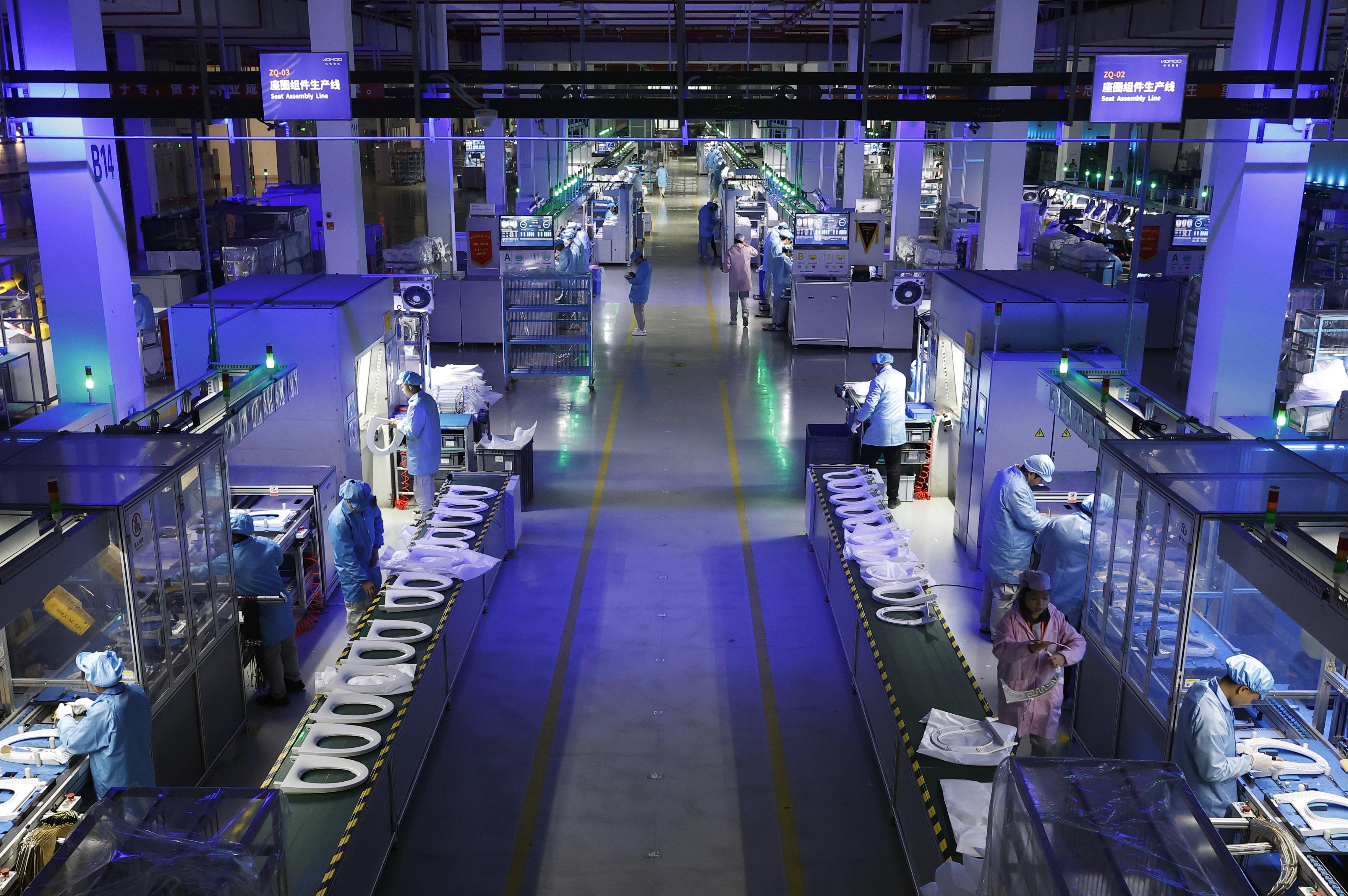 在九牧集团的座圈组件生产线上,工人们正在组装新型智能马桶盖。(泉州晚报社融媒体记者 陈晓东 摄)