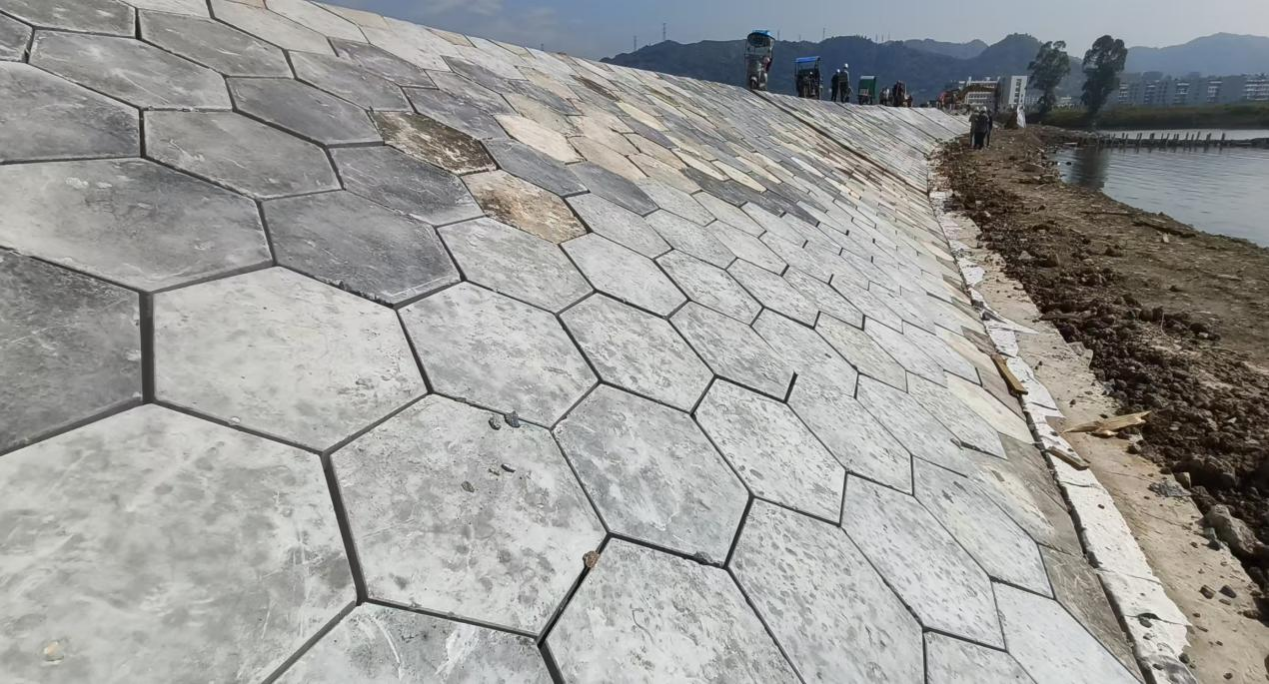 主汛期来临之际,工程建设进入关键冲刺阶段。记者在施工现场看到,海堤迎水坡坡面预制砼六角块砌筑平整规范,形成了坚固的防护面层,有效抵御海浪侵蚀。为确保工程进度与质量同步推进,各相关单位协同发力。