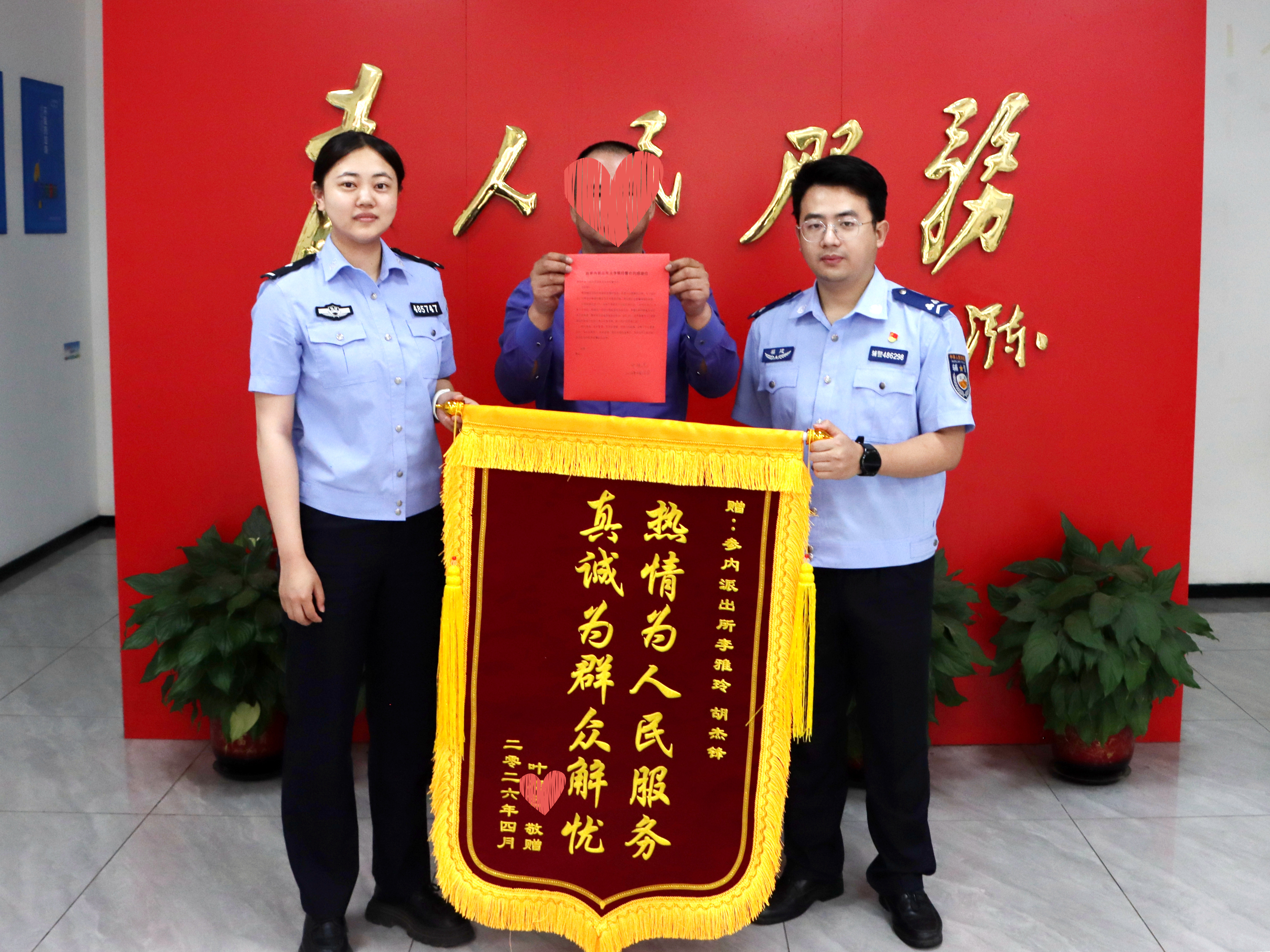 除了贴心便民、紧急救助,守护群众财产安全更是民警的职责所在。4月13日,宋女士专程来到城厢派出所,送上一面写着“长得又帅,办事又快”的锦旗,感谢民警快速破案挽损。4月5日,宋女士因购买金银饰品被骗7万元报警。接报后,民警迅速展开侦查,于4月8日成功抓获犯罪嫌疑人并悉数追回被骗钱款。