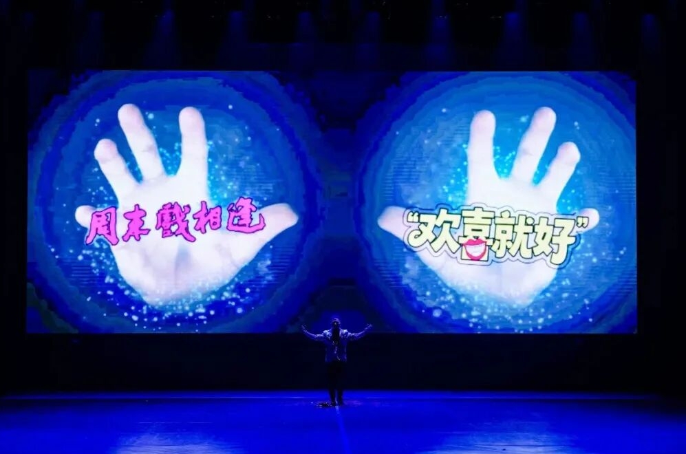 本土喜剧“新势力”的表现同样亮眼。“来疯喜剧”厂牌带来的《闽南宣传片》创意十足,幽默呈现了闽南的地标、非遗与美食,迅速点燃现场气氛。两个演员手拉手转圈模拟台风的肆虐,突然一个演员双手向上伸直“定住”台风,背后大屏同步滑出漳州标志性建筑“定风珠”的照片。简单的动作和巧妙的设计,让人瞬间记住了这一漳州地标。