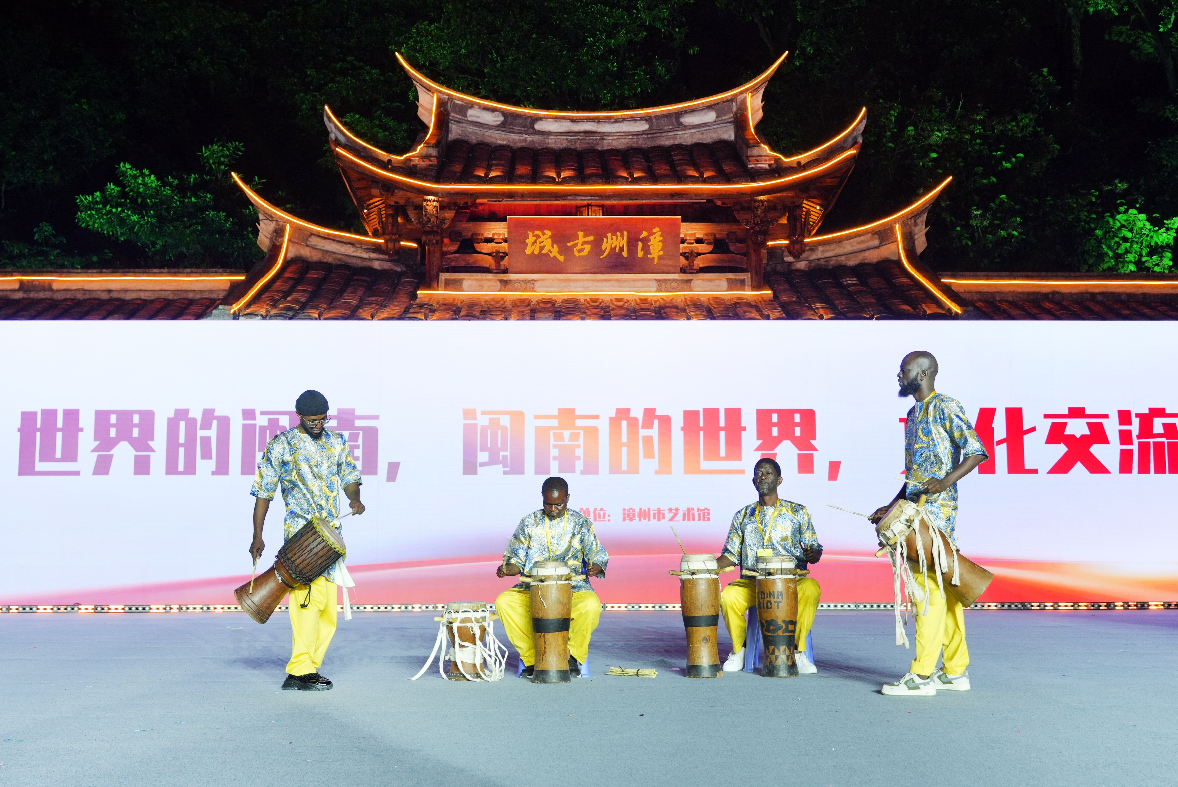4月18日晚,漳州古城北广场,鼓声如潮,层层叠叠的欢快节奏将人潮从四面八方聚拢而来,一场来自非洲的热烈风情在这里尽情绽放。多种声部与节奏交织灵动,奏响以“世界和平”为主题的乐章。