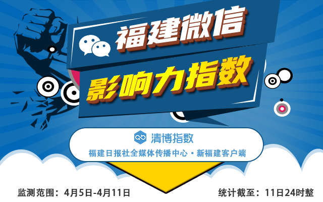 福建微信影响力指数,由福建省委宣传部指导、福建日报社主办、新福建客户端发布,由清博智能提供数据支持。