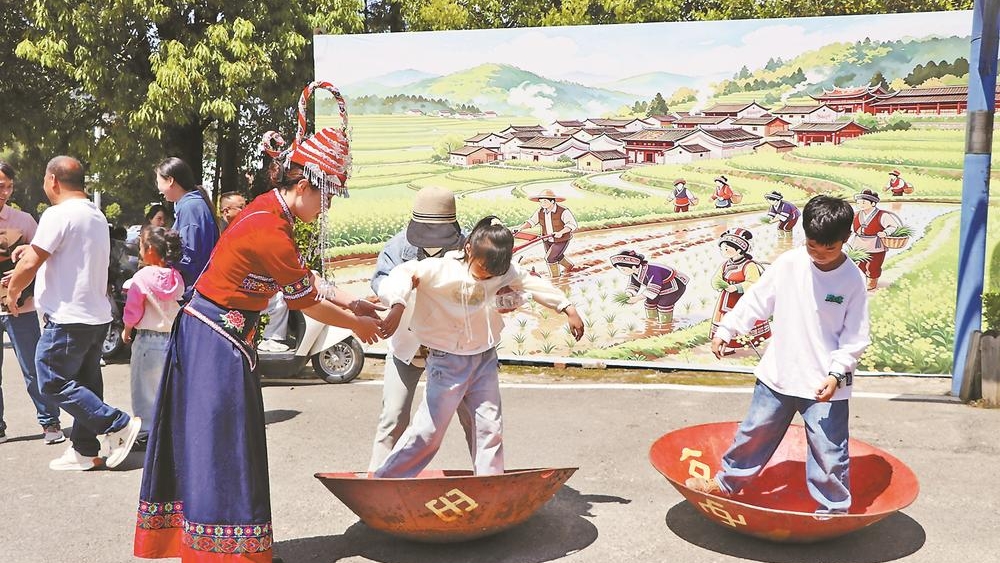 同心广场上,摇锅游戏考验平衡与默契;龙接凤、赶野猪等团队赛中,大人小孩齐上阵;竹竿舞清脆的节奏响起,游客纷纷加入,踏歌起舞;宝镜路美食区,乌米饭、糍粑等畲家特色美食让游客大饱口福;非遗集市中,畲药香包、提线木偶等展品琳琅满目……活动现场,各种文艺展演、民俗体验、美食非遗元素精彩纷呈,将游客体验感“拉满”。