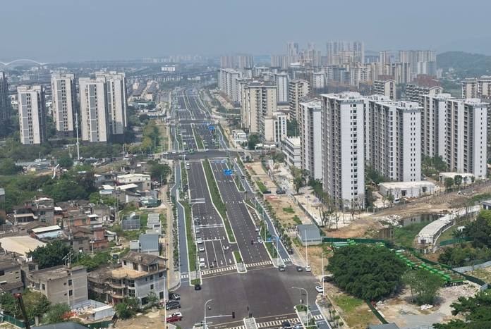 在道路现场,记者注意到中分带与侧分带绿植已全线栽种完成,沿线新植约1700多株宫粉紫荆,形成连续景观廊道。许余海告诉记者,此次道路排水设计融入海绵城市理念,雨水经侧分带设置的生态雨水篦子收集排放,这一做法既减少了行车颠簸与噪音,也使路面更加整洁美观。