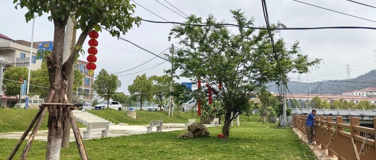 为盘活闲置土地资源,打造贴合村民需求的休闲空间,此次“口袋公园”建设立足地块实际,全面清理丛生杂草与堆弃杂物,让闲置地重归整洁有序;在保留原有果树的基础上,搭配错落有致的开花乔木与翠绿草坪,点缀精巧景观置石,打造出层次丰富、生机盎然的绿色景观,让自然之美融入村居生活;同时,增设石质休闲坐凳、仿木防护护栏,既筑牢村民出行的安全防线,又彰显出质朴醇厚的村居韵味。