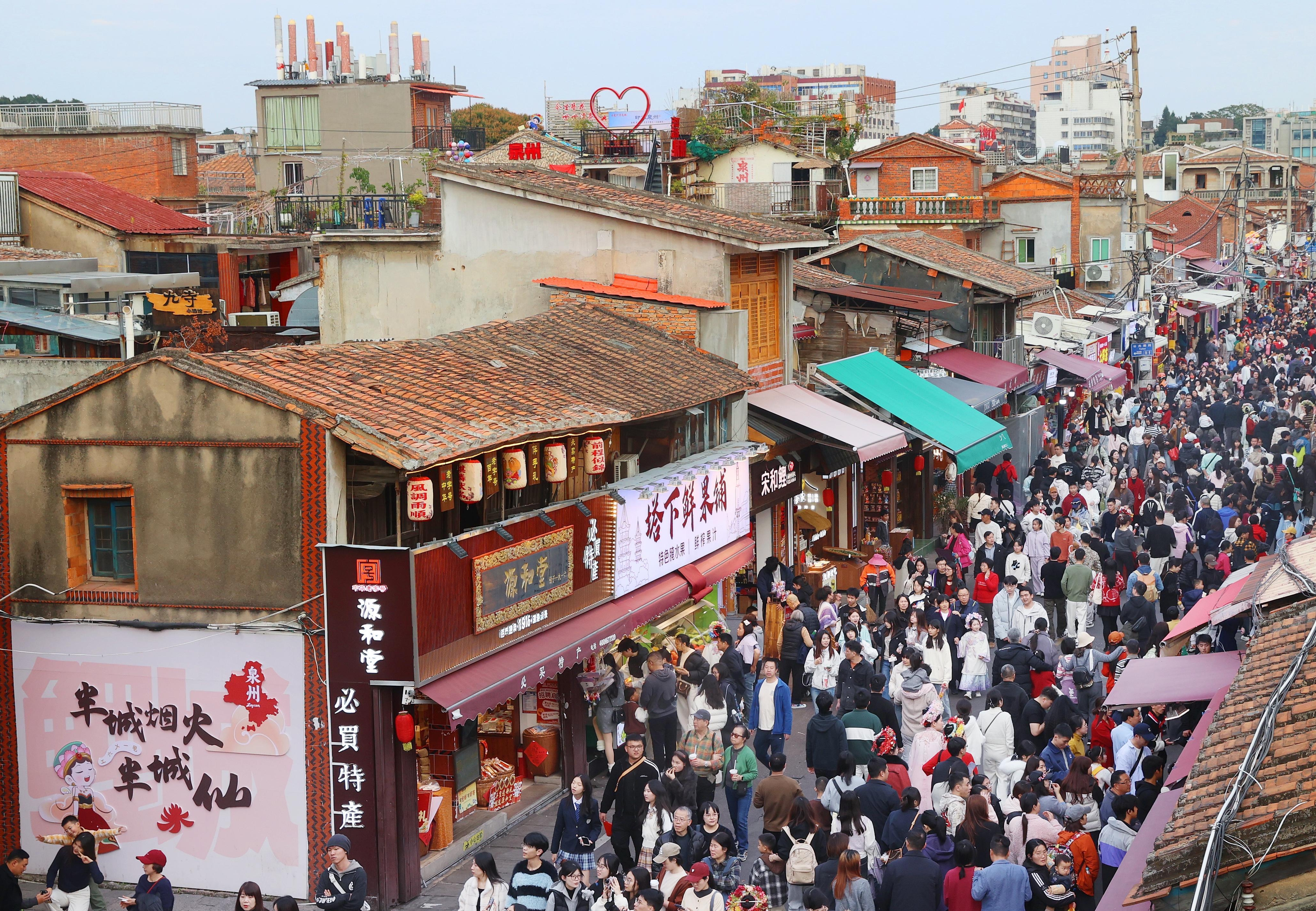 “五一”假期将至,泉州文旅市场持续升温,西街游客渐增。(王柏峰 摄)