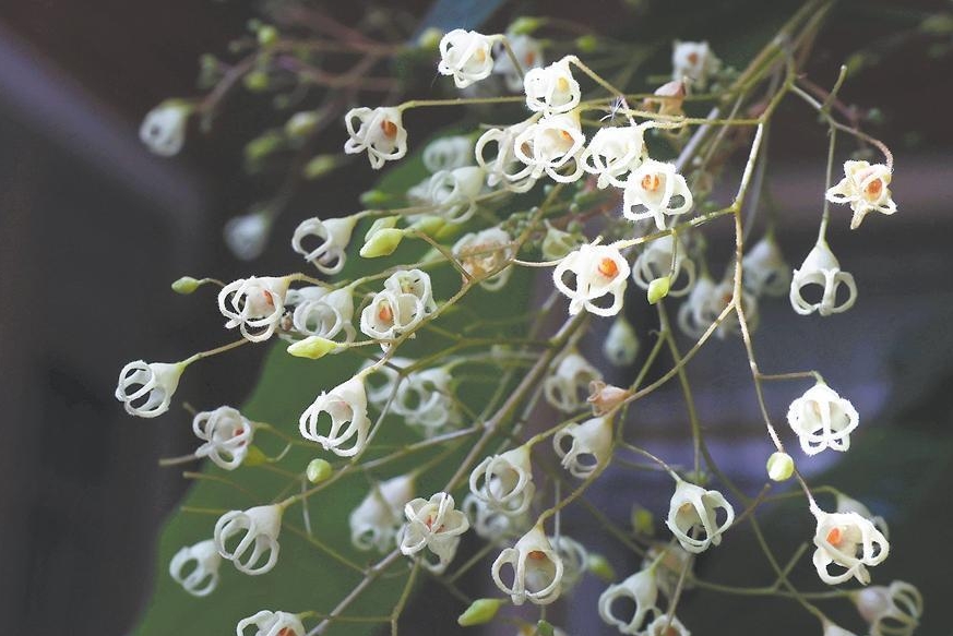 昨日上午,记者沿着九间巷走入,一株近三层楼高的大树映入眼帘。抬头望去,苹婆树的花冠硕大如巨伞,密密匝匝的白色小花缀满枝头,一团团、一簇簇,像无数繁星挤在一起,热闹又不失素雅。凑近一看,白色花朵形似倒挂灯笼,小巧而别致,微风拂过,满树繁花便簌簌而下,如春日飞雪般,铺满小巷的石桌和青石板。