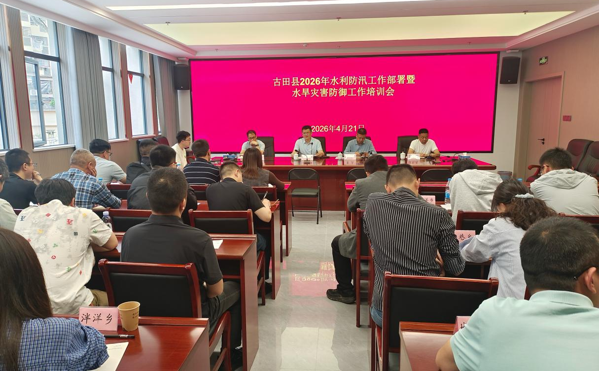 2026年,古田县面临气候温高雨少、台风影响偏重、极端天气风险较高的气象形势。县水利局局长李雄传达了省市县防汛抗旱工作会议精神,介绍全县水利系统已全面完成隐患排查、预案修订、监测预警设施维护等备汛工作,要求全县水利部门紧盯隐患整改、强化工程巡查、严守汛期值班值守,全力保障水利工程安全度汛。