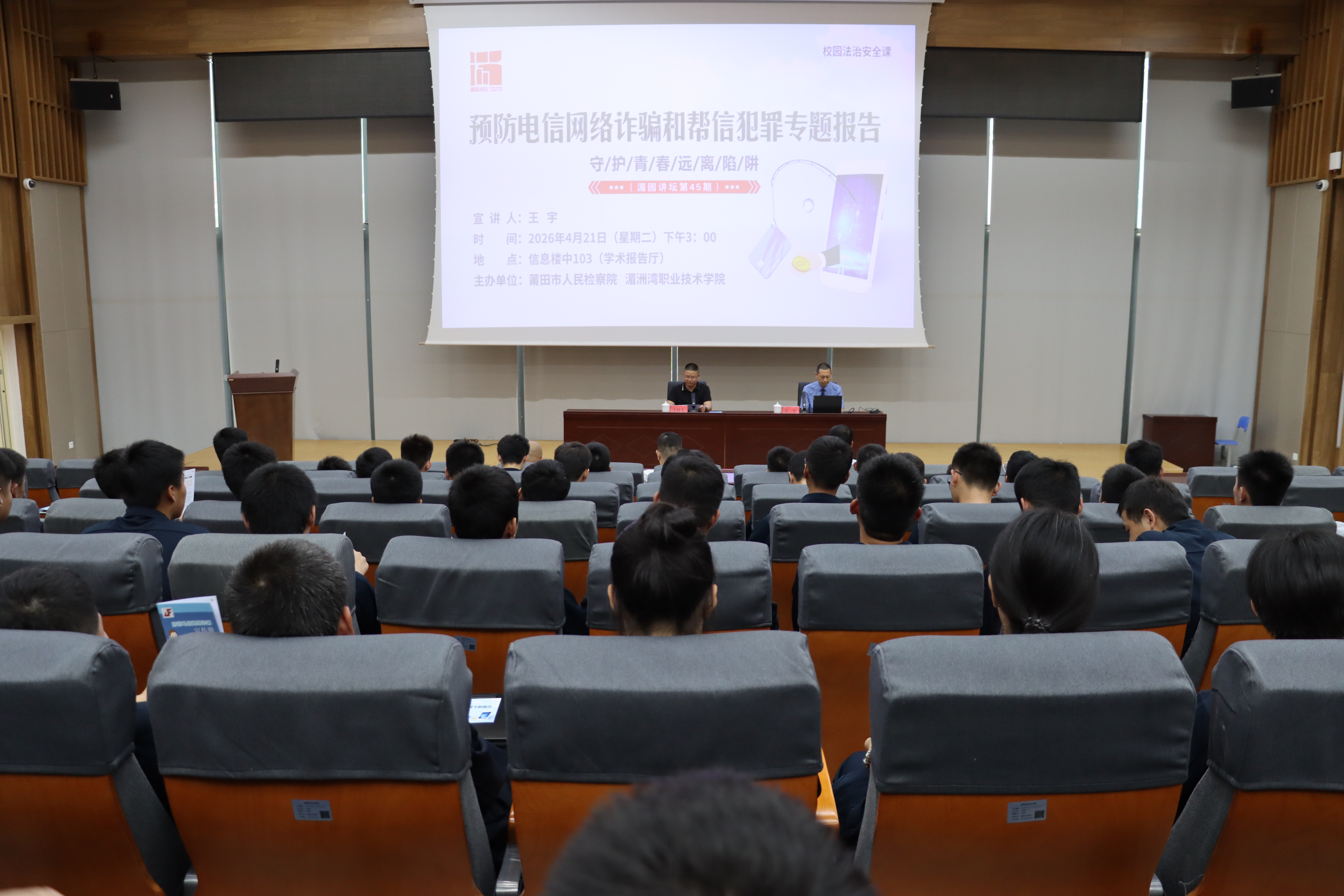 福建日报·新福建客户端 4月22日讯(记者 陈阳阳 通讯员 吴伟锋 董玉 文/图)4月21日下午,湄洲湾职业技术学院开展校园法治安全教育课暨第45期湄园讲坛专题法治讲座,进一步筑牢校园反诈安全防线,强化青年学子法治素养和自我防护能力,有效防范电信网络诈骗及帮信犯罪向校园渗透蔓延。
