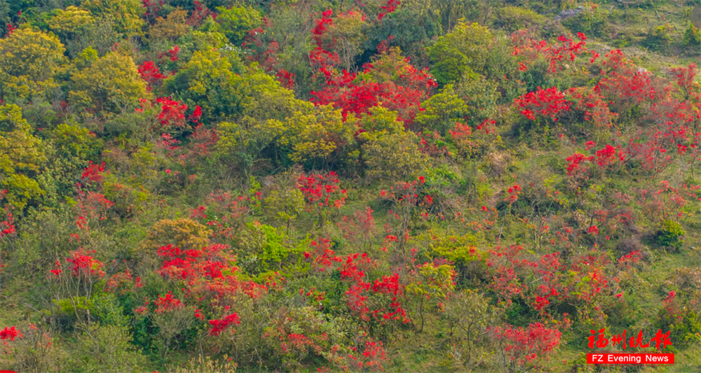 连日来,位于福清市南岭镇大姆山东南侧的野生杜鹃林迎来了绚烂时刻。113亩鲜红杜鹃竞相绽放,铺展于山巅与草甸之间,如火如霞,吸引众多市民游客前来踏春赏花。
