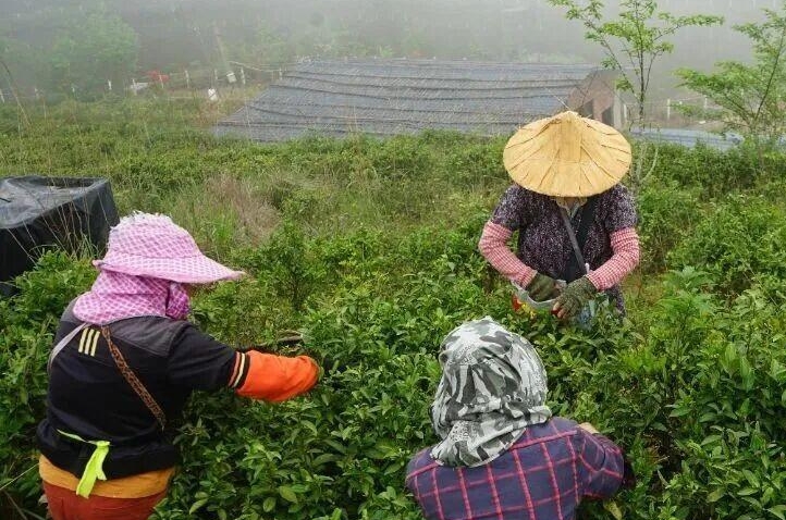 闽清县上元一品有机农业园位于闽清县金沙镇古洋村。园内金骏眉、肉桂、水仙、软枝乌龙、小菜茶等5个品种的茶树整齐排列,绿意在山间层层铺展,与缭绕的雾气交织,构成一幅灵动的春日农耕画卷。采茶工人们穿梭在茶垄间,指尖轻捻,采摘着鲜嫩的春茶。