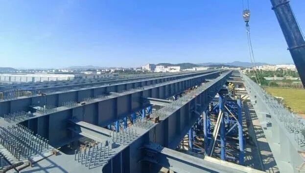 福州机场第二高速公路A6合同段全线钢结构桥梁合龙。(福州新区发布 资料图)