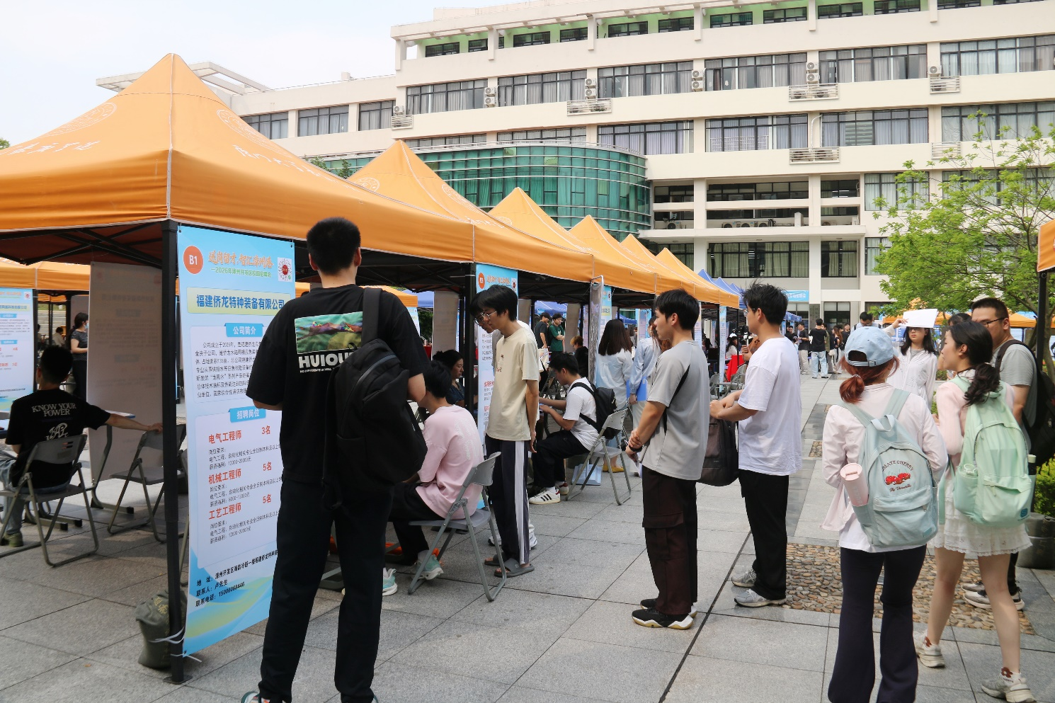 “今天来咨询的学生特别多,都是机电工程与自动化相关的专业,和我们的岗位匹配度很高。”福建侨龙特种装备有限公司HR卢先生介绍,作为国内应急排水装备龙头企业的全资子公司,企业正处于投产前的人才储备阶段,此次带来的岗位月薪均在8000元以上。当天,他在现场就收到了31份简历,和50多名学生互留了联系方式,招聘效果远超预期”。