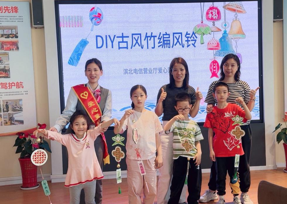 非遗手作,点亮邻里文化情。在滨北营业厅,一场“DIY竹编风铃”主题活动温馨上演。爱心大使化身手工导师,指导金桥社区的居民们编织竹编风铃,让大家在指尖创作中感受非遗文化的魅力;同时,通过趣味问答、情景讲解等方式,将个人信息保护等安全知识融入轻松的手工时光,进一步提升了居民的安全意识。