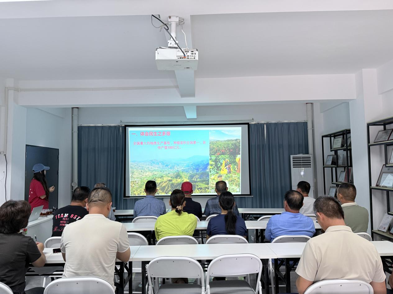 宣讲中,曹宇彤围绕科学种植与化肥减量化两个重点,结合科技小院长期扎根田间取得的科研成果和一线数据,系统讲解了当前蜜柚果园土壤酸化、肥料利用率偏低等问题的成因,并阐述了科技小院集成的蜜柚绿色提质增效技术体系,包括优化施肥位置、增施有机肥、果园生草覆盖、酸化土壤改良等关键技术。通过对比数据和田间案例,曹宇彤说明了减少化肥用量对稳定产量、提升品质、降低成本的积极作用,引导种植户转变传统粗放施肥习惯,树立科学用肥、绿色种柚的理念。她指出,推进化肥减量化不仅是降低生产成本、提高蜜柚品质的内在需要,也是保护花山溪流域生态环境、促进产业与生态协调发展的长远举措。