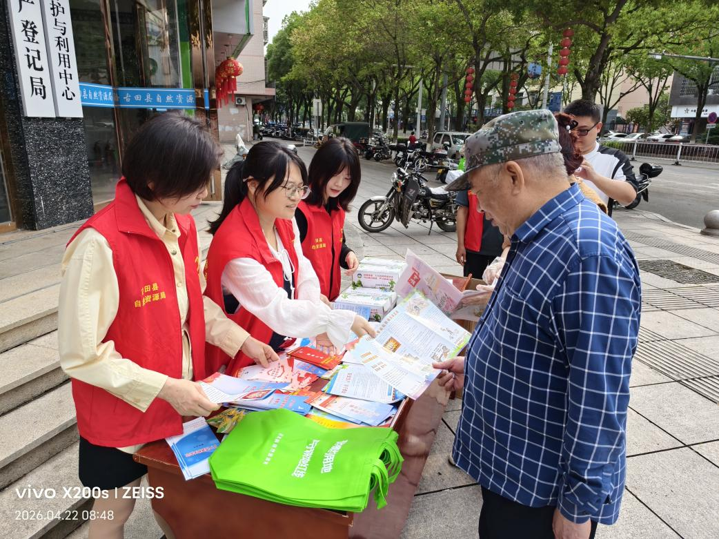 新福建新闻客户端4月25日讯 2026年4月22日是第57个世界地球日,为引导全社会树立尊重自然、顺应自然、保护自然的生态文明理念,在第57个世界地球日来临之际,古田县自然资源局紧扣“珍爱自然资源守护美丽中国”主题,聚焦自然资源核心工作,组织开展形式多样、内容丰富的宣传活动,切实把自然资源政策知识送到群众身边、走进群众心里。