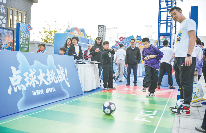 小球迷在闽潮市集参加“点球大挑战”。江信恒 摄