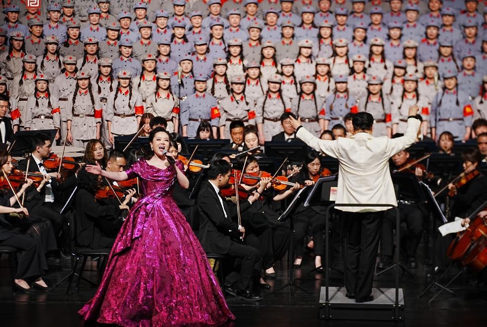 该套曲由萧华作词,晨耕、生茂、唐诃、遇秋作曲,以深刻的历史视角和激昂的音乐语言,全景式再现了红军长征的艰难历程与伟大精神。领唱阵容星光熠熠:女高音赵婧含、范明瑶领唱《遵义会议放光辉》,男中音歌唱家孙砾与周孟涛共同演绎《四渡赤水出奇兵》,男高音王超深情唱响《过雪山草地》,赵天刃领唱《祝捷》,刘宛鑫献唱《报喜》。朗诵者赵婧含、陈铁夫以饱满的情感串联十段乐章,令现场观众无不动容。尾声部分,女高音歌唱家王庆爽倾情演唱原创作品《答卷》,以领唱与合唱交织的形式,为开幕式画上充满时代温度与艺术力量的句号。整场演出既是对红色经典的致敬,也是对新时代奋斗精神的礼赞,现场掌声经久不息。
