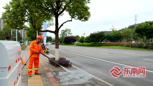 4月24日一早,南平市体育中心场馆周边,环卫工人与环卫作业车辆同步开展道路清扫、绿化带保洁作业。随着比赛日渐临近,建阳区城管局加密赛场周边主干道保洁频次,全力擦亮城市环境底色。早在4月上旬,城管部门便提前制定赛事环境保障方案,在赛前完成场馆周边全域市政道路集中清扫整治。