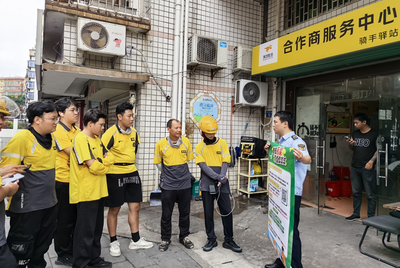 ▲同安区市场监管局派出队伍,深入外卖骑手站点开展推广宣传。(同安区市场监管局 供图)
